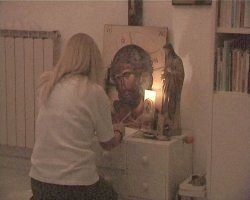![]() ![]() ![]() Diese Bilder zeigen Vassula, wie sie eine Botschaft von Jesus in ihrem Gebetszimmer niederschreibt. Die Fotos sind von einem Video genommen, welches sehr deutlich zeigt, wie Vassula die Botschaft in ihr Notizheft schreibt. Der Vorfall bezieht sich auf die Botschaft vom 16. Oktober 2000. |