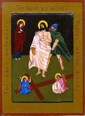 Al llegar al Monte, Me aventaron a la tierra, Me arrancaron Mis Vestiduras y Me dejaron Desnudo para exponerme a la vista de todos. Mis Heridas se volvieron a abrir, y Mi Sangre fluía sobre la tierra. Los soldados Me ofrecieron vino con hiel. Lo rechacé, porque tenía muy dentro de Mí, la amargura que Me habían dado Mis enemigos. (9 de noviembre de 1986)Tus ropas, Mi niña, se enrollarán en tu sangre, y esto, también será evidencia que tú vienes de Mi. Tú naciste para esto y tu aceptación Me deleita, porque a través de tus sufrimientos, Yo salvaré a muchos. (25 de octubre de 1995)